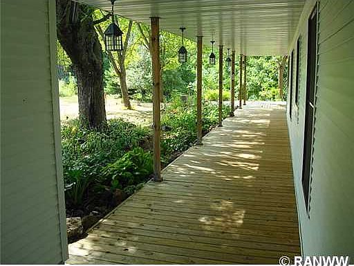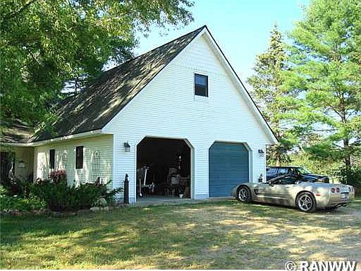 Park like setting on Hay River just upstream from Lake Tainter. Hobby farm set-up w/8 acres open, balance wooded and homesite. Open concept w/large spacious rooms, 2 open loft style bedrooms up. Incredible woodwork. Beamed cathedral ceilings. In-floor heated ceramic floors, In floor heated garage with guest house above. Low bank and nice swimming spot w/dock. 45X24 Pole Bldg. . Lot's of character with south facing dormers, covered decks. Lot's of apple tree's and perennial's,