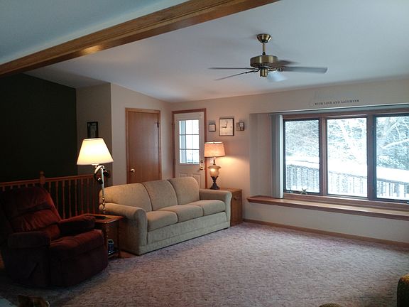 SPIRIT HAVEN CHARMER- This tastefully decorated ranch home features open concept living/dining/kitchen area with vaulted ceiling and patio doors leading to dual level deck and fully fenced and landscaped back yard. A beautiful waterfall feature enhances the peaceful, parklike setting. Kitchen appliances are only 3 years old, and there is a convenient peninsula breakfast bar. Both bedrooms are very spacious and larger includes a walk-in closet. Full bathroom has easy access step-in shower. The lower level is framed for the future family room and additional bedroom, plus it is plumbed/framed for a second full bath. The utility area is clean and dry and includes laundry with handy utility sink. An extra large two car garage is set up for working on hobbies and projects all year with full insulation under OSB walls and a gas heater to keep you warm. The home is handicapped accessible with sturdy ramp to the front entrance. Let's not forget location...only a couple miles west of town!