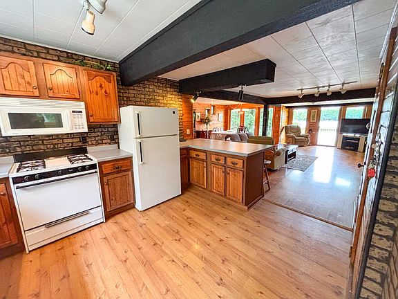 This move-in ready, year-round home on sought-after Greater Bass Lake is a true find. The finished walkout basement features new flooring, while the 14x24 patio/deck offers all-weather enjoyment with its smart rain drainage system beneath. Inside, you'll find 3 bedrooms, a bonus room, and 2 full baths. The open layout and wood-burning fireplace on the main level create a cozy ambiance. Outdoor enthusiasts will love the one-car attached garage and the shed for boat and recreational storage. With 115 feet of sandy lakefront on a .356-acre lot, it's perfect for making memories. Enjoy nearby trail riding, a top-rated 18-hole golf course, and a full recreational lake with Large/Smallmouth Bass, Walleye, Panfish, Pike, and Muskie. Don't miss out—call to view today!