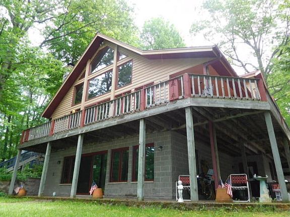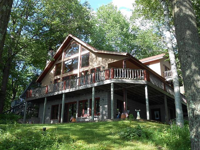 Here is a move-in ready newer year round home on beautiful and highly sought after Greater Bass Lake. Over 119 feet of frontage and located in a smaller bay of the lake with unbelievable views of the lake and sunsets. Located about a mile away form the 5 Star rated 18 hole championship Golf course and supper club. You will fall in love with the openness and naturally lit living room, loft and kitchen dining area as to all of the west side windows. A view from almost every room. The loft area has multiple uses and has it own bathroom. The main level has the master bedroom and master bath, another bedroom and the beautiful tongue and groove solid wood vaulted ceilings. Built in entertainment center and gas fireplace as well as a wood burning fireplace in the lower level. All solid pine interior doors. Wrap around deck to enjoy the outdoors. The lower level has a nice sized rec room, another lower level bedroom and walk out doors to lake side. Three adjacent properties for sale as well.