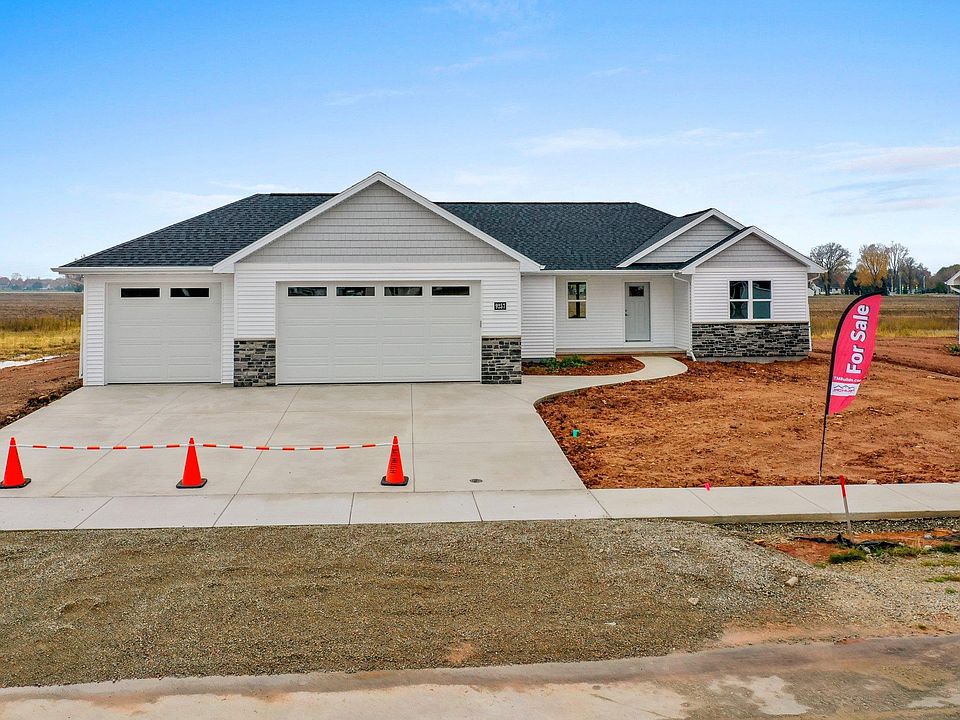This new home is 100% complete and move in ready by Tom McHugh Construction. The floor plan features a split 3 bedroom design, walkthrough laundry room from the owners closet or mudroom, and a seperate bonus half bath. Lots of upgrades added above the standard which include- LVP throughout the entire living area, quartz counters in kitchen, granite in bathrooms, fireplace with mantle, 1 egress window, insulated garage doors, large 3 car garage with a 2nd service door, basement set up for a future bathroom, 1 garage floor drain, and central AC.