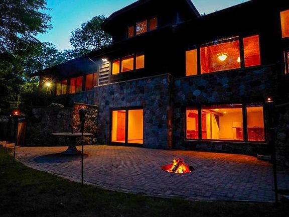 REDUCED & REMODELED! Rare one-of-a-kind opportunity, in this beautiful private waterfront retreat on your very own peninsula with 820' of gorgeous sand frontage. Enjoy breath taking water views from every room in this 3-level walk out estate located on Greater Bass Lake w/ 18-hole golf course & CC. This 4,134 sq ft home sits on 1.38 Acres & has 2-car detached garage w/ heated workshop, extra storage, boathouse, and 2 piers. The 4 bed (2 of the 4 are en suites)3.5 bath home would make a great family home, multi-family estate, or an executive retreat for those valued clients and/or senior leadership teams to spend the weekend golfing, fishing, or simply relaxing on a boat on this full rec lake. Home has an office that is closed off to the rest of the house with a wall of windows allowing peaceful views of the lake while you work, freshly remodeled lower level w/ wet bar, large rec room, 2 fieldstone Heat-A-Later fireplaces, & a great room w/ floor to ceiling views. CALL TODAY