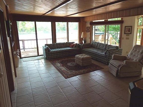 Beautiful lake home situated on a nice size lot on Greater Bass Lake! This well kept, two story home offers endless amenities and breathtaking views with approximately 134 ft of water frontage! The main level of the home opens up into a large kitchen with a view of the lake and a walk out, open sun deck. There is a large family room and living room as well as two bedrooms and two baths. The second level is occupied by three additional bedrooms, two with a lake view and one with a convenient built-in sink. There is another full bath on the second level as well. A full size, unfinished basement maintains laundry hookup and additional storage space. A neat addition to the property is located around back in the bunkhouse area! With a full kitchen, full bath and bedroom space, this is the perfect getaway for guests and/or family to stay! There is a detached, two car garage and multiple piers included in the list price. This one is a MUST SEE! Call today to see for yourself!