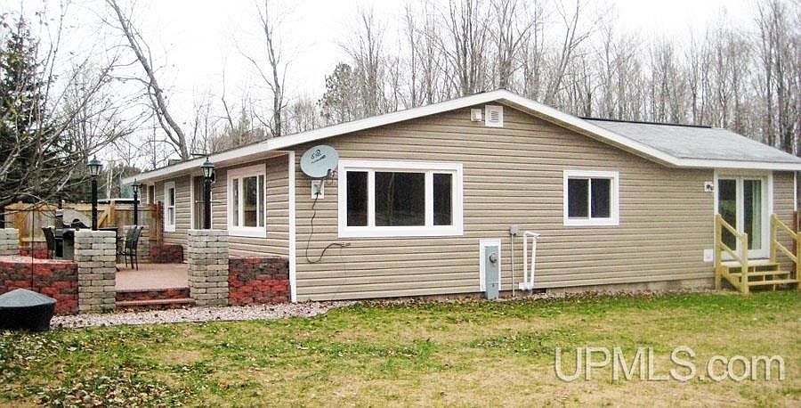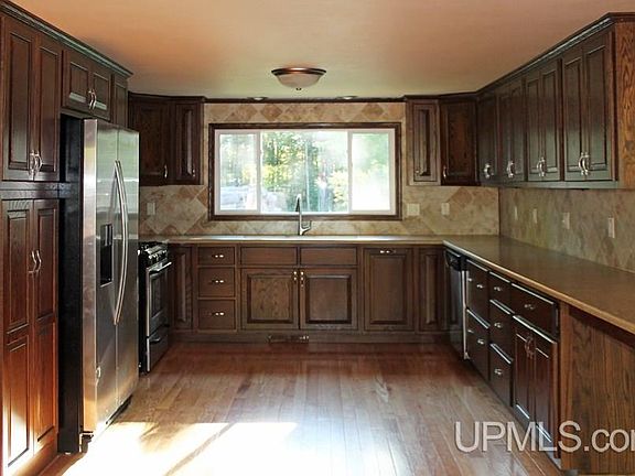 This completely remodeled ranch home is only 16 miles from Marquette and 1/2 hour from Munising. The complete re-do began by stripping the walls to the studs and includes: new vinyl siding, windows, interior & exterior doors, 2 new heating systems (propane FA & wood boiler FA), new 200 amp electrical service & all plumbing. The kitchen is a dream with all wood custom handmade (Cretens) cabinets, new appliances, a triple sink, hardened surface countertops & tile backsplash. The floors are all new- 3/4" oak hardwood with tile in BA and entries. A large entry/utility room attaches the home to the garage. There is a year's worth of hardwood for the outdoor wood boiler. A lovely brick patio with planters/lighting is enclosed by a privacy fence. What a lovely home!