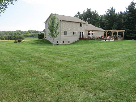 Quiet and Convenient Country Living just 9 minutes from Interstate I-94! Experience the cozy comfort and the elegant design of this impressive 3 bedroom, 3.5 bath Gem which sits on a 1.1 acre lot. Nearly $80,000 in recent updates have transformed this property into one of the finest around. High-end finishes and high-end appliances including built-in Sub-Zero refrigeration and freezer enhance the amazing Chef's Kitchen. The 36" Stainless Wolf Stove, Hood, and Advantium Oven complement the plentiful granite counters and island. The main floor footprint includes the eat-in kitchen, laundry, family room, formal dining and living room. The Exposed lower level has an awesome family room with custom beverage center, private den or office, huge walk-in storage room, and full bath. Entertain on your gorgeous colored concrete patios or the deck with the outdoor bar and grill.