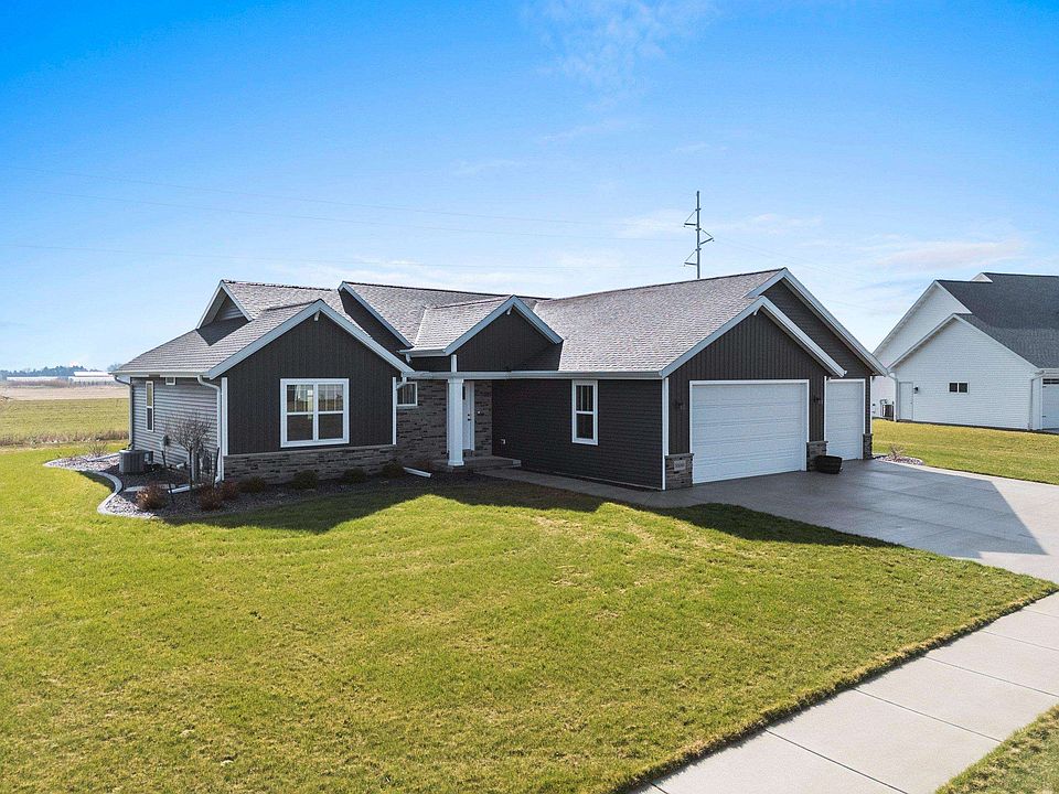 Outstanding better than new 3 bedroom, 2 bath ranch. 10' ceilings in great room, kitchen and dining area. Kitchen features beautiful white cabinets walk-in pantry, granite counter tops, quality stainless steel appliances and large island. Handy lockers and drop center in mudroom area. Master bedroom with walk-in closet that conveniently connects to the laundry room. Insulated garage, 16 x 10 concrete patio and professional landscaping with curbing help complete the package.