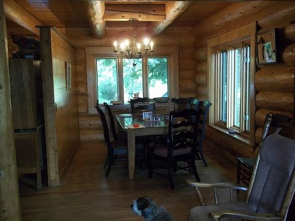 Custom built full log home situated on almost 27 acres of mostly wooded and 3-4 ac tillable. With the Honey Creek bordering the south edge of the property this property is a hunter's paradise. Home features freshly stained full log exterior, full log interior walls, Hurd windows, hickory floors, custom made doors, log stairs and custom rails. The main floor also has a large 4x8 pantry off kitchen, wood stove in living rm and nice dining rm.