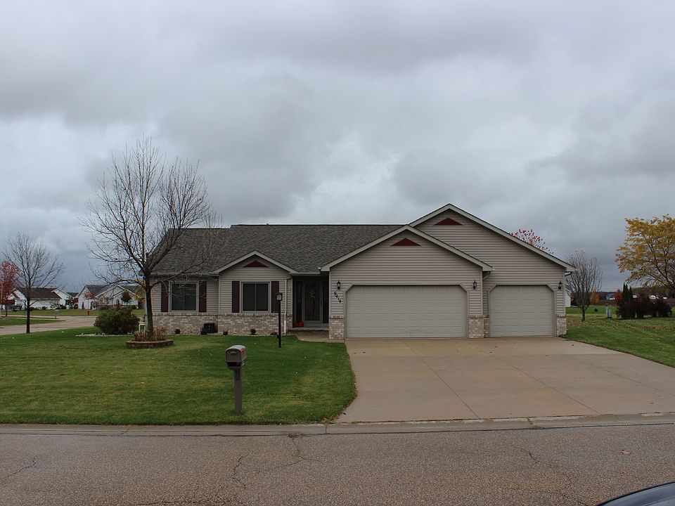 Sunrise Meadows ranch, quiet cul-de-sac, nicely landscaped. Step out from the dining area onto the deck; enjoy grilling, sunbathing, reading a book or napping. A short distance away, a farm field. Updates: water heater, furnace, roof, new carpeting in living room, updated master bath and kitchen, ongoing painting. Window cranks have been replaced. It`s a cheerful home! Come, make it yours! buyers agents welcome.