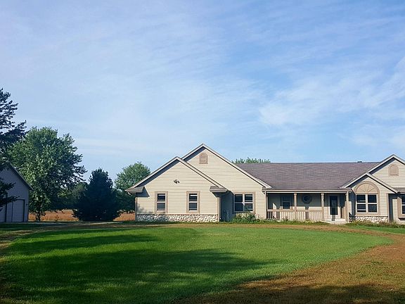 Fantastic 3 Bedroom and 2.5 Bath Ranch Home with a DEN on over 9 acres!! Great open concept layout with lots of room to entertain and host your sporting parties and Holidays. You have to see this outbuilding in person to appreciate all it has to offer! Not only is it 34 X 42 but it has an awesome office/shop area inside! Did I mention there is also a 16 x 12 Garden Shed as an extra storage bonus!! Fun Finished lower level including full size windows, bar and half bath with plenty of room for storage. Property has 2 furnaces !
