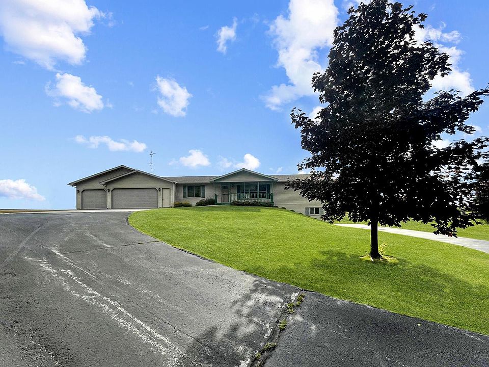 Meticulously maintained 3BR, 2BA ranch in the desirable Howards Grove School District. Situated on 1.69 acres with beautiful country views, this open-concept home features a vaulted ceiling in the living room, a sunny kitchen and dining area with patio doors leading to a deck, and a spacious master suite with walk-in closet and private bath with walk-in shower. The walk-out unfinished basement offers great potential. Additional highlights include a 3-car attached garage, roof updated in 2013, new refrigerator (2018), and new furnace heat exchanger. Move-in ready and full of potential!