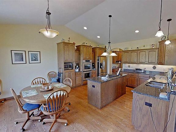 Beautiful country home with amazing layout & acreage ready for you to call it home! This spacious ranch has an open concept layout with stretching vaulted ceilings, great natural light, master suite with bubble tub and walk in shower, huge kitchen with dining area, conveniently located mud and laundry room right off the garage + finished living room and bar area in the basement. All of this located on 11 gorgeous acres with all the privacy a person could need! Home also listed for sale on 11 acres for $420,000