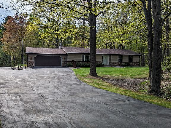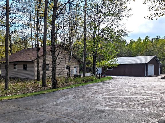 Absolutely impeccable 3 bedroom 2.5 bath ranch style home nestled on 4 acres of rolling hardwoods within minutes of the City of Phillips. The main floor of this quality home has custom oak kitchen cabinets, Corian countertops, large living room with built in shelves, Anderson Windows and main floor laundry. There is a large family room in the lower level along with a bonus room and hobby room perfect for a man cave! The garage and shop space is unbelievable, to start with there is an attached heated 1 car garage. A finished 40x32 detached with concrete floors and drains, heated by an LP Modine heater and has ample attic storage. There is also a 50x50 pole building with concrete floors, shop area, woodstove and overhead storage. An additional heated workshop and carport to provide all the space you need. The landscaped yard is stunning and there is an open sun deck to sit back and enjoy the wildlife that frequent the property. Amazing property that has been extremely well maintained!