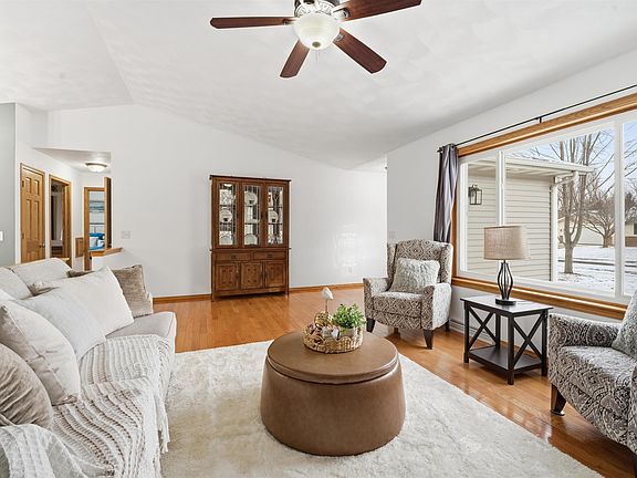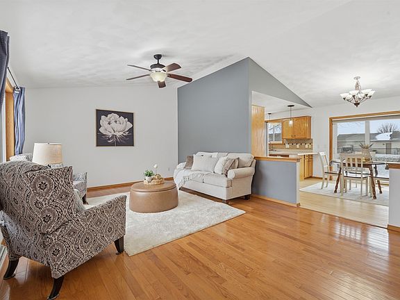 Step inside and be greeted by an open, airy atmosphere enhanced by vaulted ceilings that create a sense of volume and light throughout the main living spaces. Kitchen offers full appliance package, snack bar and updated laminate flooring. Primary bedroom offers HDW floors, walk in closet and full bath with tile walk in shower. 2 additional bedrooms with HDW floors and full bath complete the main level. Lower level is finished to include a family room with gas fireplace, rec room, 4th bedroom with egress window and full bath. Attached 3 car garage, landscaped lot and secluded area with hot tub. This home comes pre-inspected with a 1 year home warranty.