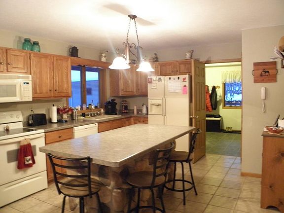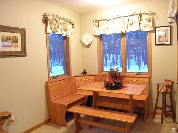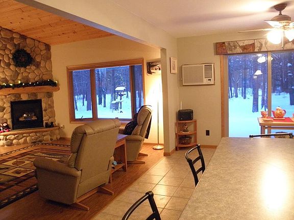This custom built 4 BR 2 1/2BA home offers country living on 3.4 acres near Solberg Lake and the national forest, yet minutes from downtown Phillips! Here, enjoy a well landscaped lot set back from the road, with a circle drive and wooded backdrop. You'll love relaxing and entertaining on the covered deck with decorative brick stamping, and the spacious rear patio that invites you to enjoy the wildlife. Once inside, the open concept with wood cathedral ceiling, stone fireplace, and kitchen with breakfast nook and island with stone base give it a cozy feel, and log railings lead to the 2 upper bedrooms and bath. The main floor master BR is spacious and has walk in closet and bath, and there is convenient main floor laundry. The detached garage has an added rear heated stall with garage door that would be ideal for use as a shop. If you love the country put this on your must see list!