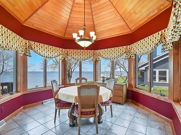 Beautiful home offering stunning views of the Bay with 106 ft water frontage on the eastern shore. Home offers wonderful living space with tons of windows providing endless water views. Beautiful kitchen has an island with cooktop and breakfast bar, and hearth room with fireplace. The dining room has 360 views and door leading out to large patio overlooking the Bay. 1st floor primary suite offers gorgeous views, 2 w.i.c, and bath with air-jet tub and walk-in shower. Finished lower level walkout has a rec room, 4 bedrooms, & full bath with access to a heated 3.5 stall garage with extra deep stall. Seller does not have flood insurance so does not believe the home is in the floodplain. We want to give everyone the safest environment possible t