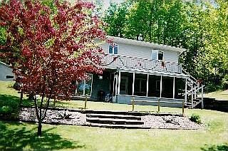 122' of all sand frontage on clear water Crystal Lake plus a beautiful 3 bedroom home with all glass on the lake side to take in the afternoon sunsets and morning breeze. You would not have to do a thing to this property so lay beack and enjoy yourselves as this area and this lake offer four seasons of enjoyment of paddle boating, canoeing,water skiing and year around fishing. Just down the road is a nice 9 hole golf course and many places to stop in and grab a bite to eat or a cocktail or softdrink. The winding road leads to 1000's of acres of adventuress wilderness and many other small and full recreational lakes. The lot is all wooded and private plus it has a paved driveway. There is a 2 car with a workshop area plus a 1 car that is big enough to house the pontoon boat. This place is well worth checking out if your interested in privacy and low maintence plus being on water.
