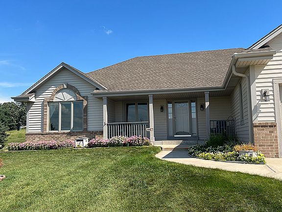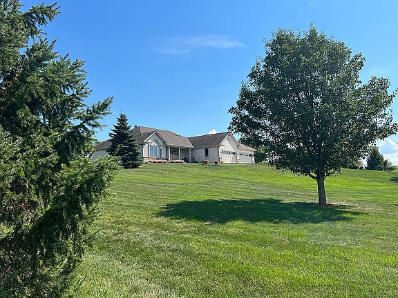 Beautiful split ranch on 1.5 acres perched atop a hill overlooking 1,000 acres of countryside and farmland. This well maintained open concept home is a perfect place to relax and enjoy spectacular sunsets from the front porch. The eat-in kitchen (with a large pantry) and living room host vaulted ceilings with large windows and a sunroom that can be an extra dining space or the perfect spot to sit and enjoy your morning coffee or tea. The master bedroom on one side of the house has a large walk in closet, jetted tub and walk-in shower. Close by in the mud room you will find laundry and another storage closet. Two bedrooms and the second full bathroom are on the opposite side of the home with beautiful views of the countryside. A four car garage with basement access is sure to fit your needs. The basement has a work bench area and is plumbed for an additional bathroom, making it ready for you to add your personal touch to make it your own.