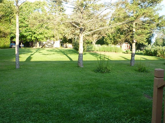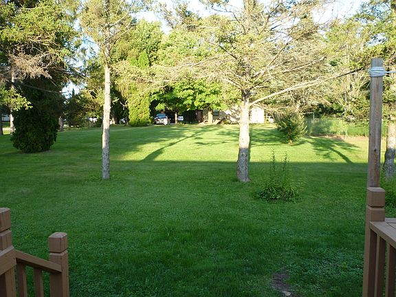 Enjoy small town living on close to half an acre. Scenic private back yard with tall mature trees, a garden area and a deck to relax on. Inside you will find a spacious living room with new front bay windows, and an open staircase to the basement which is ready for a rec room to be finished. Kitchen and dining area have lovely views out the back. 3 bedrooms, master has a walk in closet, plenty of room. Other features include first floor laundry, half bath, updated water heater and the appliances are included.