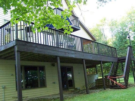Manistique Lake, Curtis, great location, West Bay area, Chalet boasts, wood flooring thru-out home, Two finished levels,/4bdrs./2full baths, lower level walk-out basement partial finished.