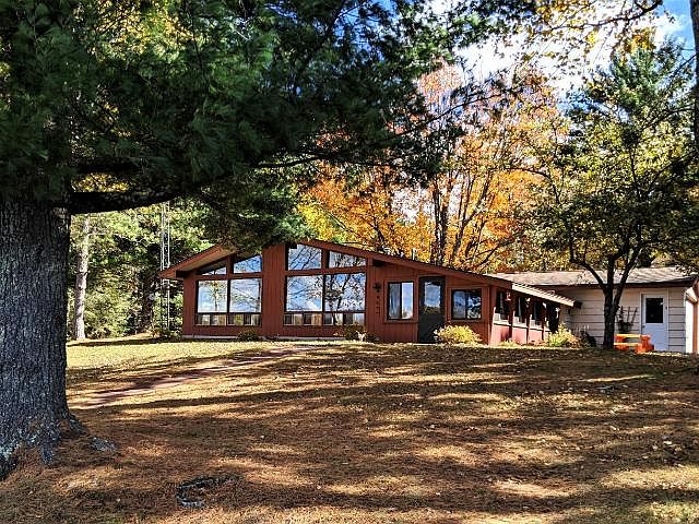 #428J) Memory Lane Cottages Inc: Incredible Big Dardis Lakefront property with 10 wooded areas! This gorgeous property includes 2 yr-round homes. Loon Lodge features a great room with floor to ceiling windows, hardwood floors, gorgeous lannon stone wood burning fireplace, nice kitchen, 3 bedrooms, full bath, laundry room, 1/2 bath, dining room w/patio doors to an adorable 3 season room & attached 2+car garage. Heron Hideaway is a 2 bedroom, 1 bath home, eat-in kitchen open to the living room w/a free standing wood stove & detached 2+car garage. These homes are very popular in a vacation rental program. Options!: Continue to rent out both (investment!), live in one & rent the other or have them both for private family vacation homes. Big Dardis Lake is a Class A Muskie Lake! MORE features: wet boathouse, regulation size tennis court, 3 piers, Redwood siding, conventional septic systems, drilled well, central vacuum, black top drive, beautiful waterfront & woods and breathtaking views.