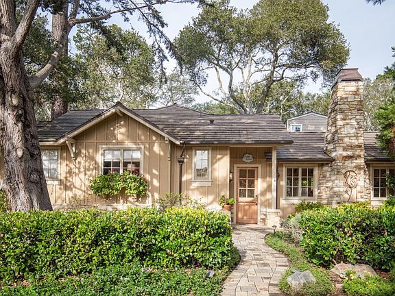 "Foggy Bottom" - Run over to the beach or run downtown...it's easy to do either from this delightful Carmel cottage. Just about four short blocks to the beach. Lightly used and easy to live in, this custom built home features a kitchen fit for a chef and a lovely dining area with French doors out to a sweet little patio at the back of the house. The house is set back nicely from the street. Main bedroom features a steam shower and a separate tub, plus a fireplace and easy access to the outdoors. The living room has an open beam ceiling, fireplace, Alder wood floors and French doors leading to the patio. Attached finished garage, parking space in the driveway and in front of the house. It's warm, charming, and very easy to live in. Third bedroom has been used as an office with built-in cabinets and bookshelves.