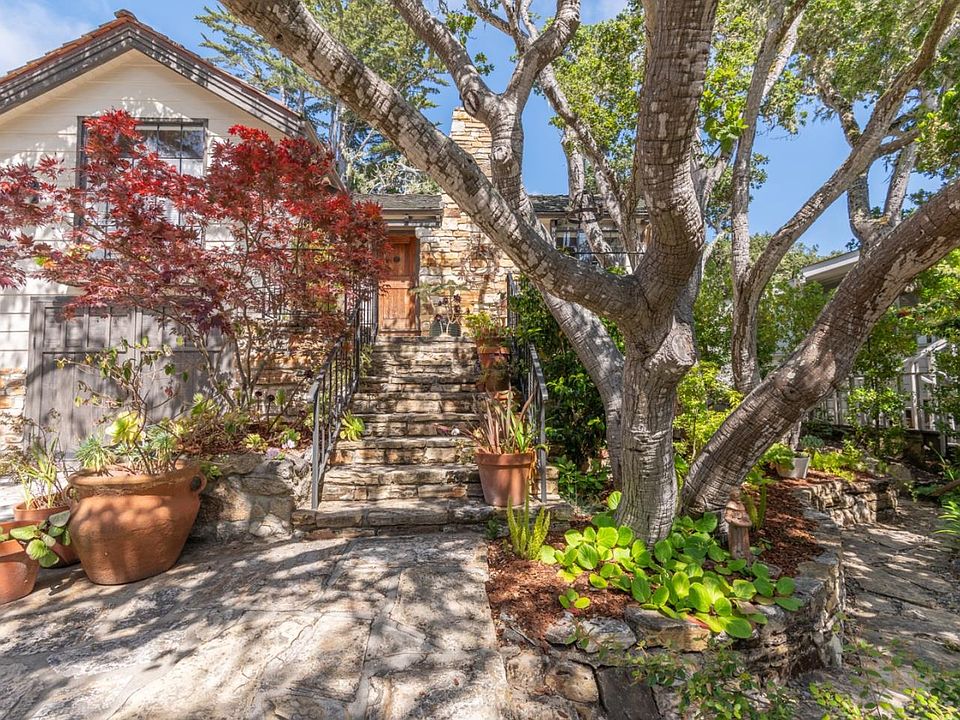 A perfect example of an Al Saroyan design and build in the heart of the village. Very privately sited at the back of an over-sized 5,000 square foot lot, the home emits a kind of magical, secret garden vibration. Rebuilt from a 1940's original Carmel cottage, this small but seamless home was done with the utmost attention to detail and craftsmanship. From the custom metal doors and windows, to hand-hewn beams and surfaces, its easy to see and touch the quality anywhere in or around the home.