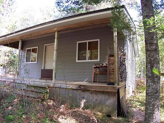 Fantastic hunting camp in high game area bordered by state land on 3 sides. Property features mature forest, a water well, 2 bedroom vinyl sided cabin with steel roof and covered porch. There is no electricity to this property. Heat provided by wood stoves and bathroom facilities are provided via path bath.