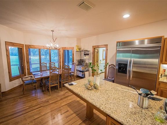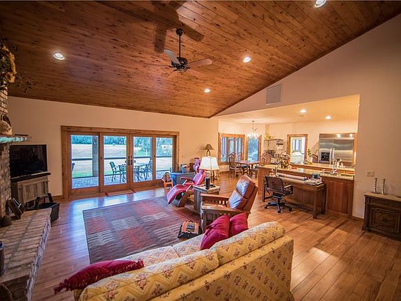 Well-built custom home on approximately 40 acres in the country. Upon approaching the property via the private secluded drive you'll find the land is dotted with gorgeous trees and the yard is well maintained and nicely landscaped. You'll appreciate the privacy and attention to detail on the property and inside the home. The interior boasts solid wood custom cabinets and trim throughout, high end appliances, a large fire place with hearth, high ceilings, solid wood doors, wood and tile flooring and an island kitchen.
