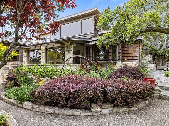 Gorgeous 3 bed 3 bath home in Carmel-by-the-Sea. Unique architecture, natural elements and large picture windows providing expansive views of the lush landscape, creates a spa-like tranquility. Flexible and spacious floorplan, radiant heat stone floors, plaster walls and concrete countertops. Large family room with fireplace, wine closet and wet bar has French doors that open to a fenced deck area. Upstairs primary suite features a sauna, mountain views, an ocean peek and direct access to the roof-top deck where you can peacefully enjoy the lovely scenery and smell of the ocean. The gated corner lot provides privacy for outdoor entertaining and gatherings around the built-in fireplace. Award winning Carmel schools. Paradise awaits you! (Additional Photos Comings Soon)