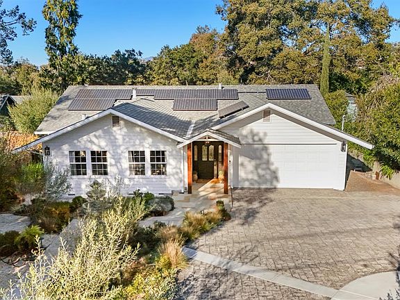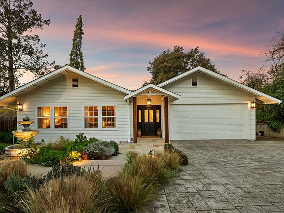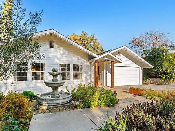Enter through a welcoming gated front yard where lush landscaping, a tranquil water fountain and mature olive trees create an immediate Mediterranean-inspired ambiance. The expansive gated frontage offers ample room for additional parking, while the home itself sits gracefully back from the street sparking curiosity. Set on a generous half-acre, this beautifully designed 3-bedroom, 2-bath residence offers thoughtfully planned single-level living. Large rooms showcase elegant design choices, layered textures, custom tile work, solid brass fixtures, and quality flooring throughout, creating a cohesive and inviting atmosphere ideal for both everyday living and entertaining. The oversized kitchen is the heart of the home featuring an island, an oversized refrigerator & freezer, double ovens and provides a seamless flow into other living areas. The expansive primary suite serves as a private retreat, opening directly to the backyard and offering a spa-like bathroom with a large walk-in shower and double sinks. Two other bedrooms benefit from the 2nd bathroom featuring dramatic tile work with a glass door separating the rain shower and soaking tub. Designed for relaxation, the comfortable family rooms French Doors open to a large limestone patio with dedicated sitting and dining areas. The lush grounds gently descend along a flagstone walkway to the pool & spa area complete with pool house and sitting area perfect for summer gatherings. Beyond the pool lies a true gardener's paradise, featuring a greenhouse and raised Redwood beds. Situated on a private lot on a peaceful stretch in Alta Heights. Tall fencing and established mature trees provide exceptional privacy, while solar panels and full city utilities add efficiency and convenience. The property is just minutes from downtown Napa, Oxbow Market, Napa Fairgrounds, and all the city has to offer.