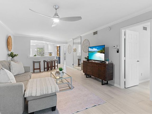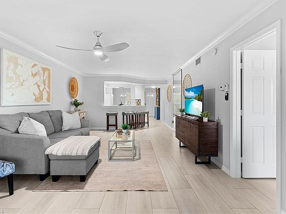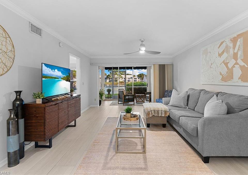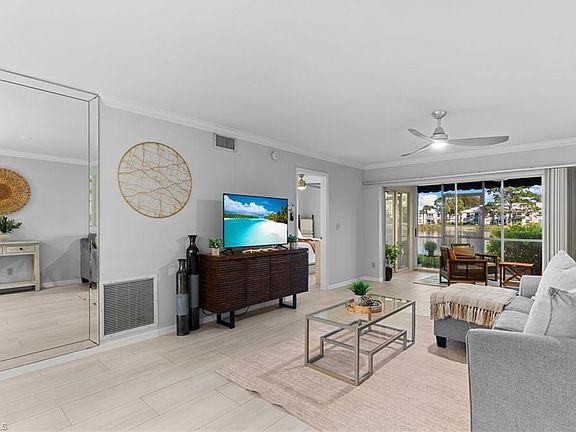 Turnkey Living Near the Beach & Mercato - this ideal location allows you to embrace the true Florida lifestyle—where you can bike or walk to Vanderbilt Beach, the Ritz-Carlton, Mercato, local cafés, and boutiques - plus a short drive to Fifth Ave dining and shopping, and other local attractions! Experience the perfect blend of easy beachside living and low-maintenance luxury in this beautifully updated, furnished first-floor condo in the highly sought-after Pavilion Club gated community. Offering a tranquil lake view and an exceptional North Naples location, this residence places you just minutes from the Gulf’s sandy shores, Mercato’s vibrant shopping and dining scene, and the area’s most beloved attractions. Step inside to a bright and welcoming interior enhanced by new flooring, crown molding, fresh neutral paint, and an abundance of natural light streaming through large windows. The updated kitchen features granite countertops, a tile backsplash, newer appliances, and modern lighting—an ideal setting for preparing meals before heading out for a day by the water. The spacious front flex room, complete with built-in cabinetry and a large window, can serve as a den, dining area, or cozy reading nook. The main living area opens seamlessly to a private, air-conditioned glass-enclosed lanai where you can enjoy morning coffee or evening cocktails while taking in peaceful lake views. The primary suite offers a relaxing retreat with a generous walk-in closet, ensuite bath with double sinks, and tiled walk-in shower. A comfortable guest bedroom with ample storage and a nearby bath with a tub and shower provides inviting accommodations for visitors. A separate laundry room adds everyday practicality to this thoughtful floor plan. Pavilion Club residents enjoy a heated pool, clubhouse, BBQ and picnic area, and biking and jogging paths, creating a welcoming atmosphere for those seeking community and connection. Whether you’re searching for a year-round residence or a seasonal getaway, this home delivers turnkey convenience, modern comfort, and an enviable Naples address that captures the essence of effortless Naples beach lifestyle living.