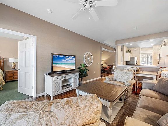 Discover your perfect getaway in this beautiful two-bedroom plus den condo at Greenlinks in Lely Resort! This vacation haven accommodates up to six guests and is just steps away from resort amenities. **Rates vary throughout the year; we offer weekly and monthly pricing. Nestled in a prime location close to the pool, this beach-themed condo is the ultimate relaxing retreat. It provides convenience without compromise. Enjoy stunning views of the serene lake and majestic palm trees from your private tiled lanai, where you can fully open the wall-to-wall sliding glass doors to let in the fresh air. The open-concept kitchen is fully stocked and features a large dining table and breakfast bar seating, making mealtime a breeze. The unit also includes an oversized front-loading washer and dryer for your convenience. **Resort Amenities