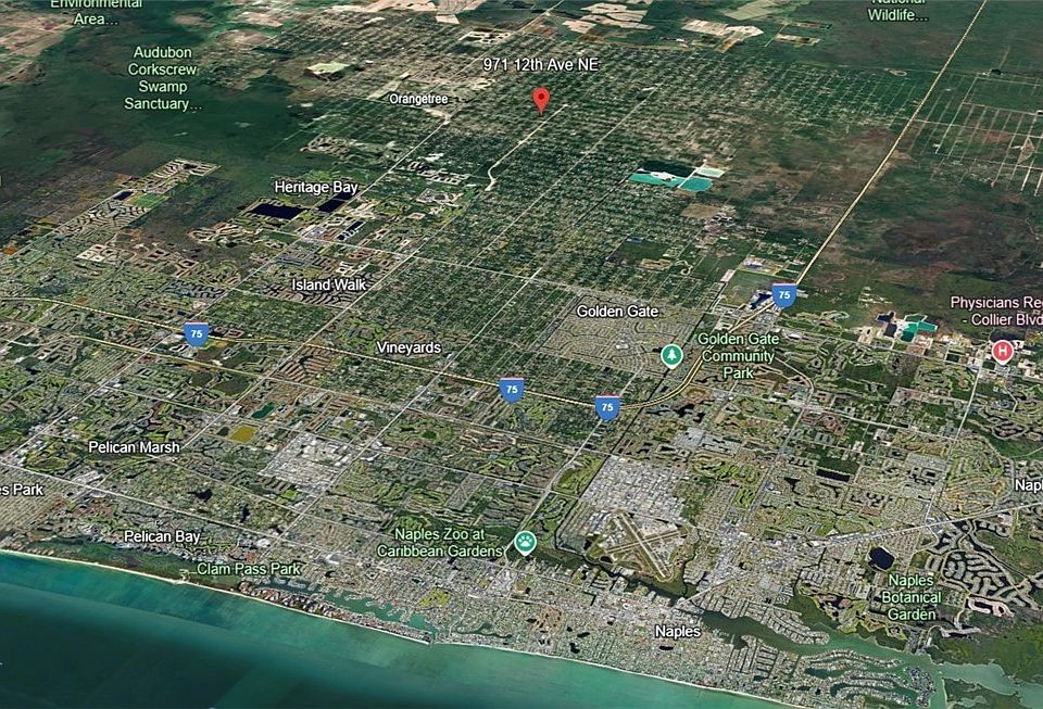 Over one acre of land to build your single family dream home. With a depth of over 600' you will have plenty of room to spread out with lots of room for a swimming pool, Pickleball or tennis ct, garden, and lots of privacy Excellent location off Randall Blvd. with new luxury construction evident on both sides of 12th Ave. Avenue ends at canal, offering a more secluded neighborhood. As seen in the long aerial view, it is almost a straight shot to the Gulf of Mexico from this location. Opportunity is here in Golden Gate Estates! Just south of Randall Blvd provides access to the rapidly expanding section of Naples, FL, NEW Publix, Chase Bank, ACE Hardware, McDonalds and more. Vanderbilt Beach Road Extension project is expected to be completed summer 2026. Near Corkscrew Swamp Sanctuary and CREW lands for local outdoor recreational opportunities. Buyer to verify zoning, and use for their intended purposes. Make an offer today!