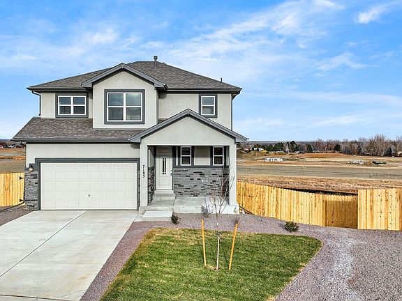 New two story with stucco and stone exterior.. Open concept floor plan with LVP at entry, flowing into family room, dining room and kitchen. Slab granite counter tops throughout, island with breakfast bar, walk in pantry, 42" upper cabinets for lots of storage. Stainless steel appliances to include gas stove, microwave, wine/beverage cooler, and dishwasher. Stacked stone fireplace in the family room for those chilly Colorado evenings. The family room is prewired for surround sound for those who like to stay home and enjoy movies in the comfort of their own home. Upper level boasts 4 bedrooms, 2 bathrooms and a convenient laundry room.
