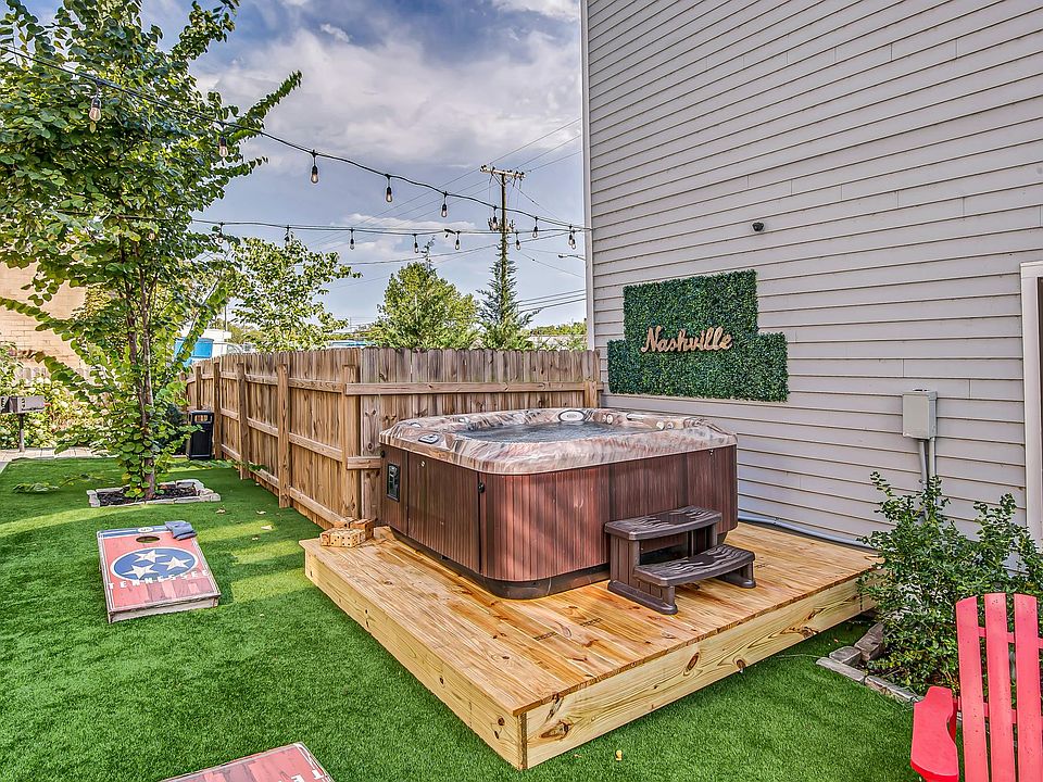 Built in 2019, a designer complex of luxury furnished townhomes with private garage as well as shared access to an enclosed courtyard with fun games like corn hole and hot tub