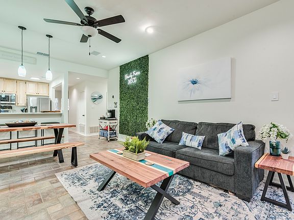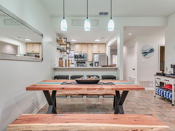 This thoughtfully updated condo offers not only a contemporary relaxed vibe, but also an undeniably great location at Camp Warnecke Estates which sits across the street from Schlitterbahn on the Comal River. Spend the day with a leisurely float down the Comal which conveniently starts and ends a short walk from your doorstep due to the river wrapping around the complex. Complete your evening by taking advantage of a community grill or walk to one of the nearby restaurants!