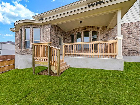 This is a beautiful home that features a lovely bay shaped front porch that opens on an entry foyer which leads to a flex room with bay window! As you pass through the foyer, the main living area opens up to a large family room with curved back window wall and ceiling detail, a large kitchen and dining area with another curved window and on to a large covered patio in the back. A powder room off the foyer and a utility room off the garage with under-stair storage area complete the downstairs. Upstairs you'll find a large owner's suite that features a bay window, separate his and hers vanities and a walk-in closet, as well as a game room, two more bedrooms with walk-in closets and a second full bathroom.