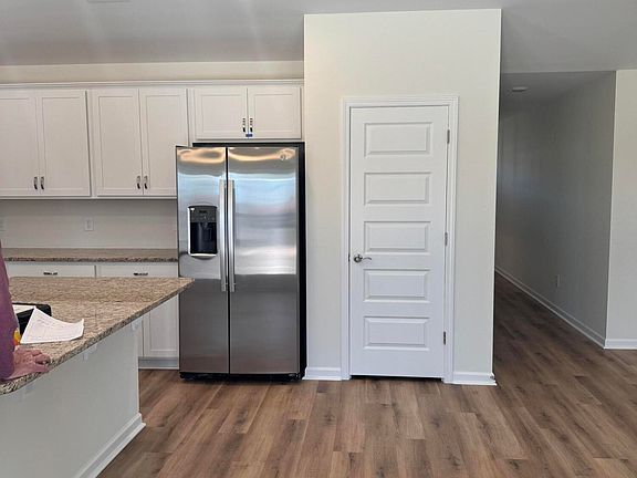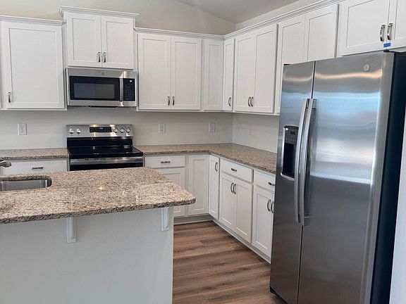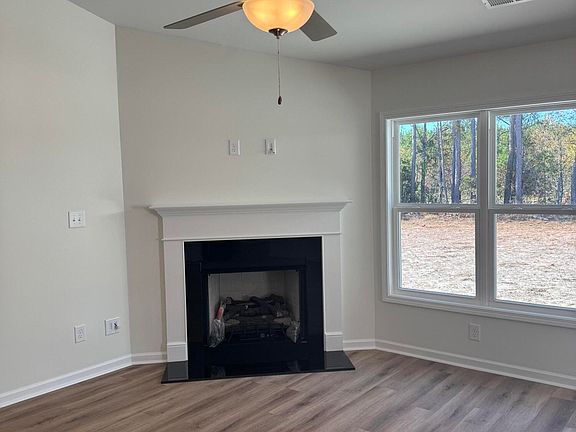 Three bedroom and two bathroom with split bedroom home featuring a great room open to the kitchen and dining area that includes a corner pantry, and center eat at island. The primary bedroom is separate from the secondary bedrooms and overlooks the backyard, and features a large walk-in closet and walk in shower. It also includes a natural gas fireplace and hot water heater.