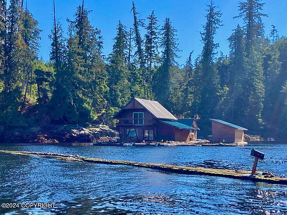 Nothing is quite as charming, or as much fun, as living or holidaying in a floathouse! There is a ton of value here with a 3BD, 1BA floathouse, a bunkhouse that sleeps 4, a fish cleaning station & a spacious shed/ workroom. In a protected bay, a 10 boat ride from Thorne Bay, this is a peaceful & delightful place to spend time. Forget waterfront, live on the water! Boat available for purchase too.Let's take a tour! Park your boat at the front of the float and enter into the floathouse through glass doors. You enter into a bright & cheerful living room & kitchen heated by a propane fireplace. On this lower level is a bathroom with a shower & instant hot water, as well as a new addition with a storage/work room and a bedroom. Head upstairs to two more bedrooms, open in plan, but with a privacy wall. Outside is a bunkhouse, a cute building with a central room with a propane space heater, a storage room at the back and a narrow bedroom on each side with 2 single beds in each. It needs a few finishing touches but is comfortable, fun and functional. Next is the shed, a roomy building with 3 rooms. It houses a propane generator & batteries, a laundry with a freezer, and workroom. Floathouses do require some maintenance and this one has been well cared for. Extra floatation in welded PVC pipes and new bags have been recently added to the float, the seller is a diver and took great care of the float, both above and below the water. He said it is well anchored with blue steel rope to shore, with eyelets drilled into nearby rock. No real property comes with the floathouse, you are buying the float and the buildings on it only by bill of sale. The floathouse is permitted through the Forest Service, and the current permit has been paid up to 2027. You pay in 5 yearly increments, and it's $1,000 a year. The property comes turn-key, with everything that you need to move in as well as some handy extras like Dewalt tools. Water is fed to the float from a nearby spring. The boat is available for purchase for an extra $30,000 to the buyer of the property. It's a 2014 Motion Marine. The outboard is 225hp, a 2020-21 model with only 500 hours. It comes with a kicker. The boat is roomy and in great condition, the outboard alone costs around 20K, so this is a fantastic deal! If you have some practical & boat skills, you will love this adorable setup! Live like they did in the old days, between logging camps. Life is charming here, simple, quiet & delightful.