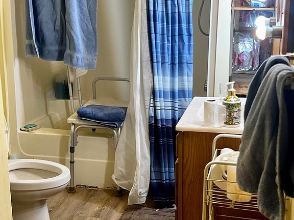 1200 SQFT log cabin house with a loft and walk around deck. Arctic entry. Concrete foundation. Newer windows. 20x24 detached garage with a 10x7 garage door and concrete floor.Septic and well on the property.Year built is estimated.2 outbuildings- 1 heated with a wood stove.