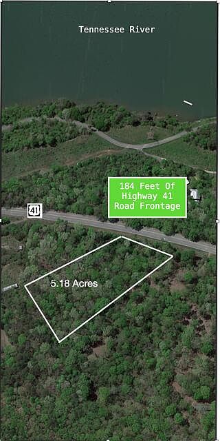 Time to kick back on Lake Nickajack! Fantastic opportunity to BUILD near the water. Very close to Hales Bar Marina where you'll find boat slips up to 80' in length. 5.1+/- acre lot with 184± feet of frontage on Highway 41. Utilities available at the road. JUST 3 mins to I-24, 15 miles to Chattanooga and 100 miles to Nashville.