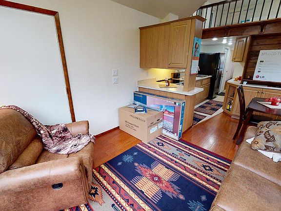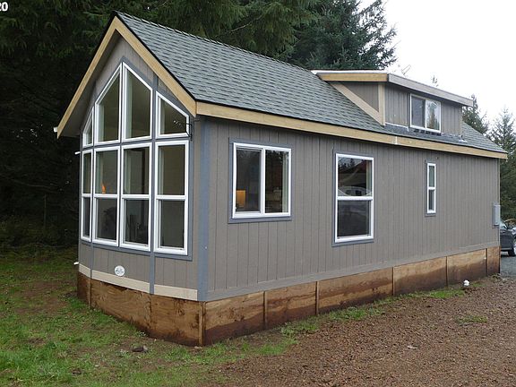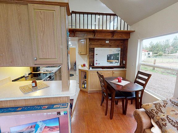 Sophisticated styling and fully furnished, this Tiny Home will need to be moved to the park of your choosing. With high, vaulted ceilings and plentiful windows you will love the large feel of this home. Prow windows in the front living room; kitchen with full size appliances and a spacious eat in area; solid surface flooring; lots of built in storage and a full bedroom. Loft space for guests or storage. Furnished with top of the line furnishings including kitchen appliances!