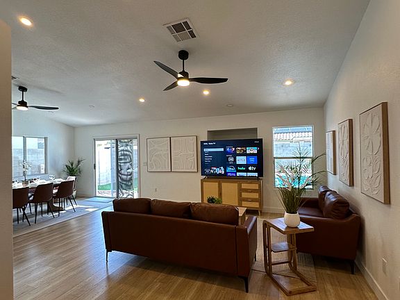 Fully furnished beautiful property located in north Las Vegas. You are walking in open and welcoming property that is freshly paint has brand new flooring, swimming pool, jaccuzi. Single family residence, great neighborhood, very close to shopping centers and restaurants. Luxury house where you can call home