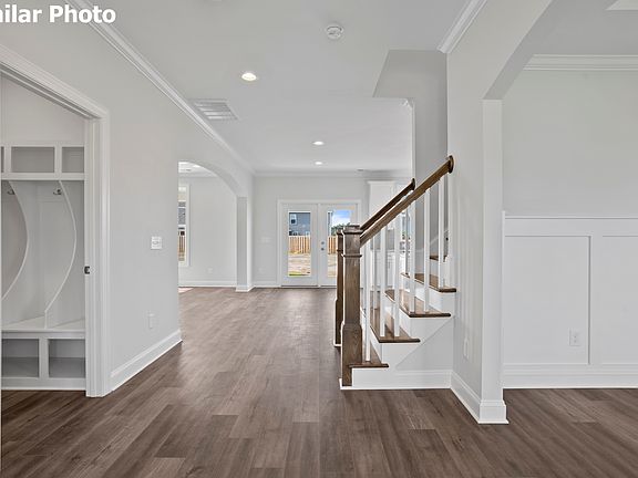 Welcome to Magnolia Reserve and the Cedar by American Homesmith. This beauty is a 4 bedroom 2.5 bath home! The covered front porch welcomes you in to a traditional foyer and a charming dining room customized just wonderfully with arch and other lovely detail. The kitchen is large and convenient with an island that will meet all your cooking needs, QUARTZ countertops, and an extended space for a breakfast area. The living room boasts a gorgeous custom ceiling and cozy fireplace. On the 2nd floor you will find all of the bedrooms. The owner's suite has a tray ceiling, dual sink vanity, an oversized FULLY TILED shower, a linen closet, and one of the largest walk in closets you've ever seen! The other 3 bedrooms share another full bath and the laundry room is conveniently placed right in the middle of all the rooms.