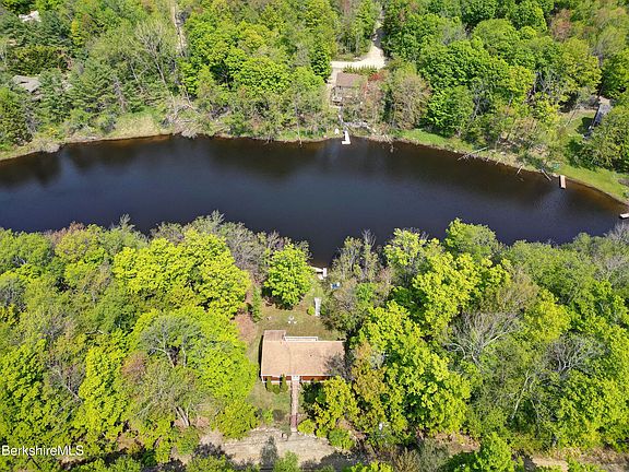 Secluded lake living! Enjoy lake views from every room of this very well-maintained, four season lake house. A welcoming open floor plan with wide plank wood floors, vaulted ceilings. This home offers the best full time or second home lifestyle, both first floor bedrooms with en suite bathrooms. Oversized deck perfect for entertaining, Lower level accessed from the back yard includes flex space currently used as the third bedroom and two additional spaces with laundry area, tons of storage for work shop, storage for kayaks etc. Minutes to Jacob's Pillow, Tanglewood, Otis Ridge and all activities Berkshire County offers. Listing includes additional adjacent .29 acres lot for a total of 170 feet of lake frontage.