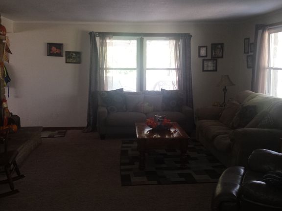 Large rooms, kitchen with new cabinets, dishwasher, old wood burning stove(non-working) formal dining room with brick planter and stairs leading down to full door basement its considered crawl space but Can stand and walk in easily, dirt floor with black plastic down can be used for storage (lawn mowers, 4wheelers,) 3 bedrooms, the master room is very large. Bathroom with closet and door that leads to large laundry room/storage room. Large living room with gas stone fireplace (does work). Brand new lifetime warranty windows all through the house, beautiful real hardwood flooring that's been refinished, carpet only in living room (with same real hardwood underneath) large front porch , side porch with carport. First time listed since it's all been redone. A great buy! Perfect for rental property. Country setting 5mins from town!