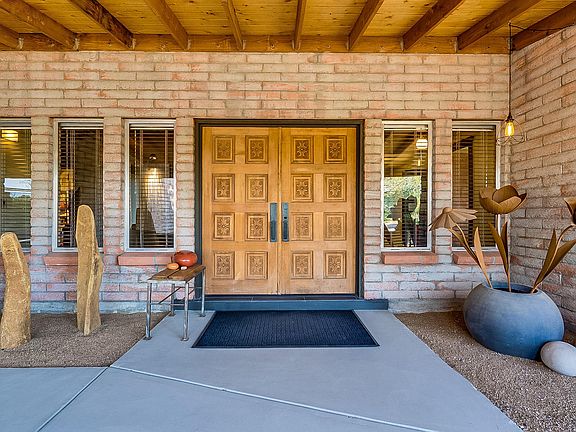 Welcome to the wondrous natural world of the very special Sonoran desert. Here you will be integrated into the special animal and bird life in a park-like setting, much like the Desert Museum. It's a BIRDWATCHER'S PARADISE it's zoned for HORSES and allows for adding guest house. It has the modern appointments of new homes in a sensitive blend of contemporary and original Tucson Territorial design. This home has its own natural sanctuary and nearly 900 square feet of covered porches & 4 exposed patios to experience it all. The high end materials such as sleek porcelain flooring, the custom made cabinetry throughout, the glass doors of the kitchen and office along with the metal cased windows, are juxtaposed with the timbered ceilings, the old wood door casings and washed adobe like walls.