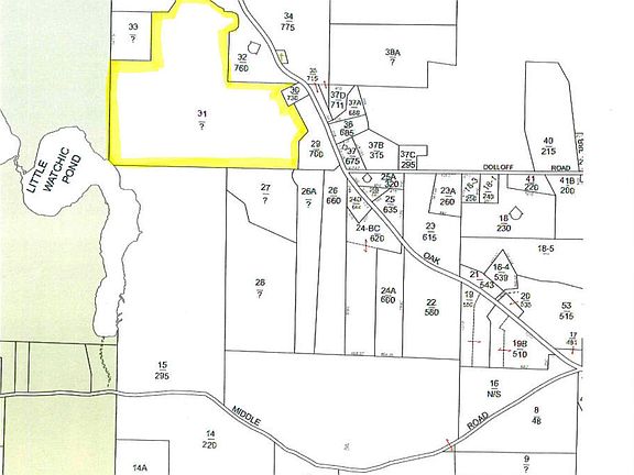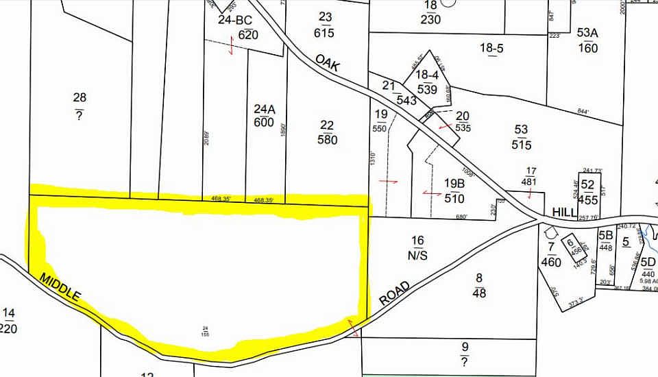 126 Acre lot in tree growth located off the intersection of Middle and Oak Hill. See map for location details