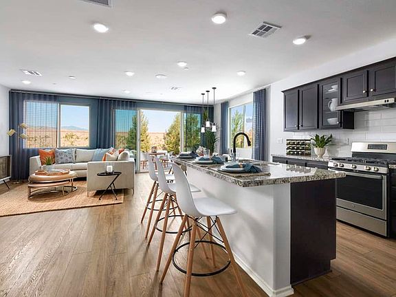 Bristol at Crown is a single-story layout arranged with light, bright living space. This open concept design welcomes you into a window-filled great room centered around an open kitchen with prep island and plenty of counter space.An available covered patio beckons for warm desert evening hosting. The adjacent primary suite offers a walk-in closet and a spa-like bath with dual vanities.Highlights:Expansive Great RoomOptional covered patioOpen Kitchen layout
