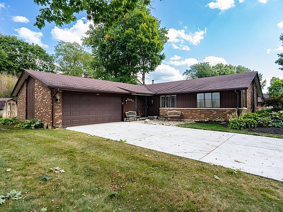 Attractive 3-bedroom, 2.5 bath brick ranch is a rustic retreat with warm brownstone, wood trim, and special touches like the beamed ceiling, brick hearth, and a convenient, wrap around floor plan. Three spacious bedrooms and two full bathrooms, plus another half bath offer plenty of options. The master bedroom includes a private bath with his/her sinks, and a walk in closet. The kitchen has a skylight, and the dining room is open to a sizeable family room. The real gem of this property is the wonderful backyard! With a gorgeous, curved deck in a shady, tranquil setting, this is sure to be a special place for quiet rest and reflection. The large yard has a partial privacy fence and a shed for all your storage needs. Two-car attached garage. Schedule a tour today!